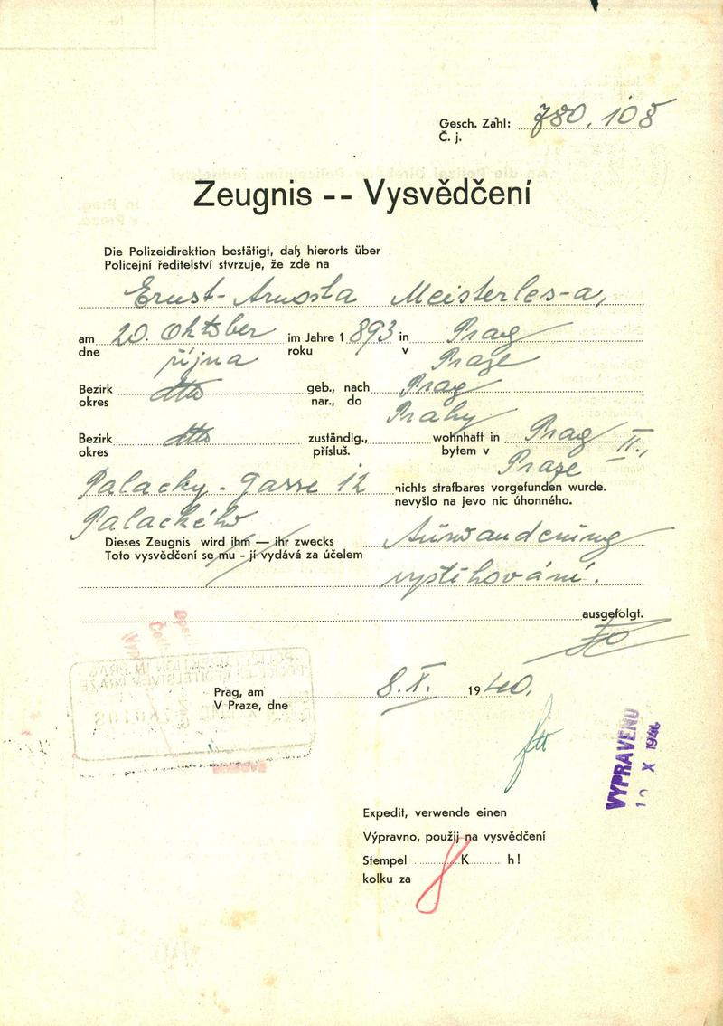 Meisterles Arnošt: Vysvědčení zachovalosti
