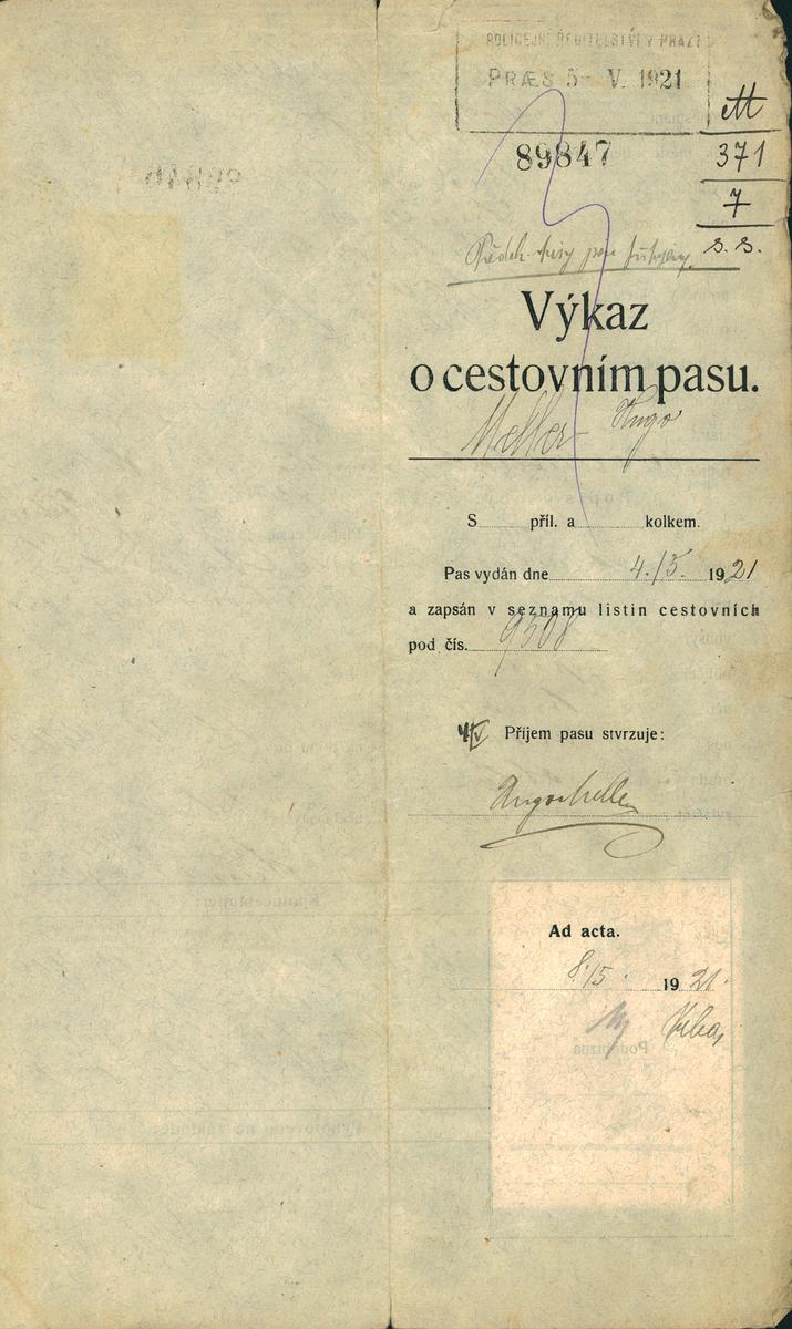 Národní archiv Praha > Policejní ředitelství v Praze > 1931-1940 > M > Meller Hugo
