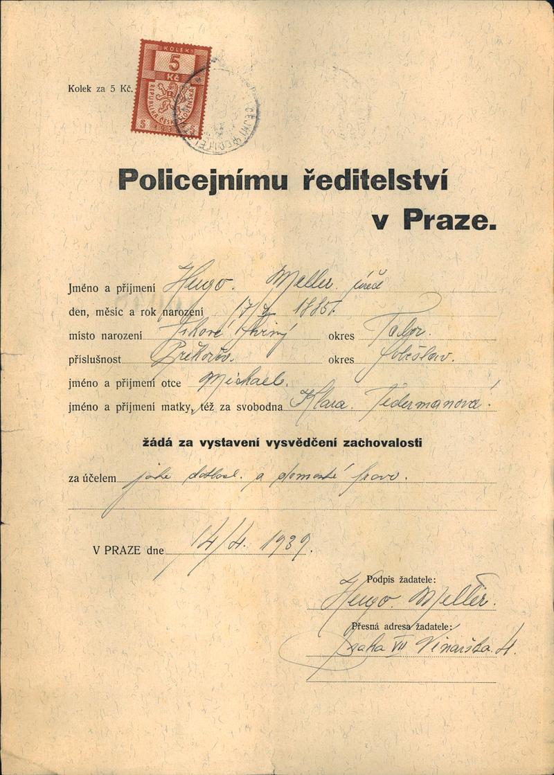 Meller Hugo: Žádost o vystavení vysvědčení zachovalosti