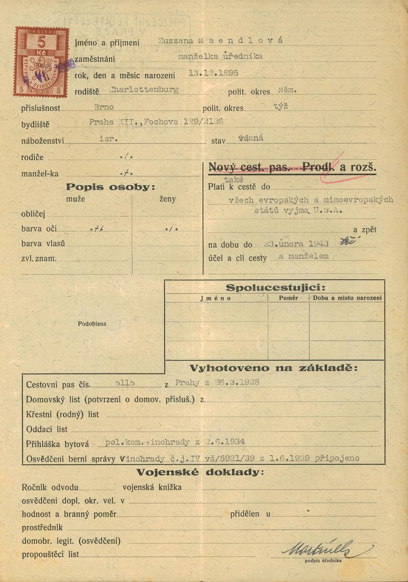 Mändlová Zuzana: Žádost o rozšíření cestovního pasu