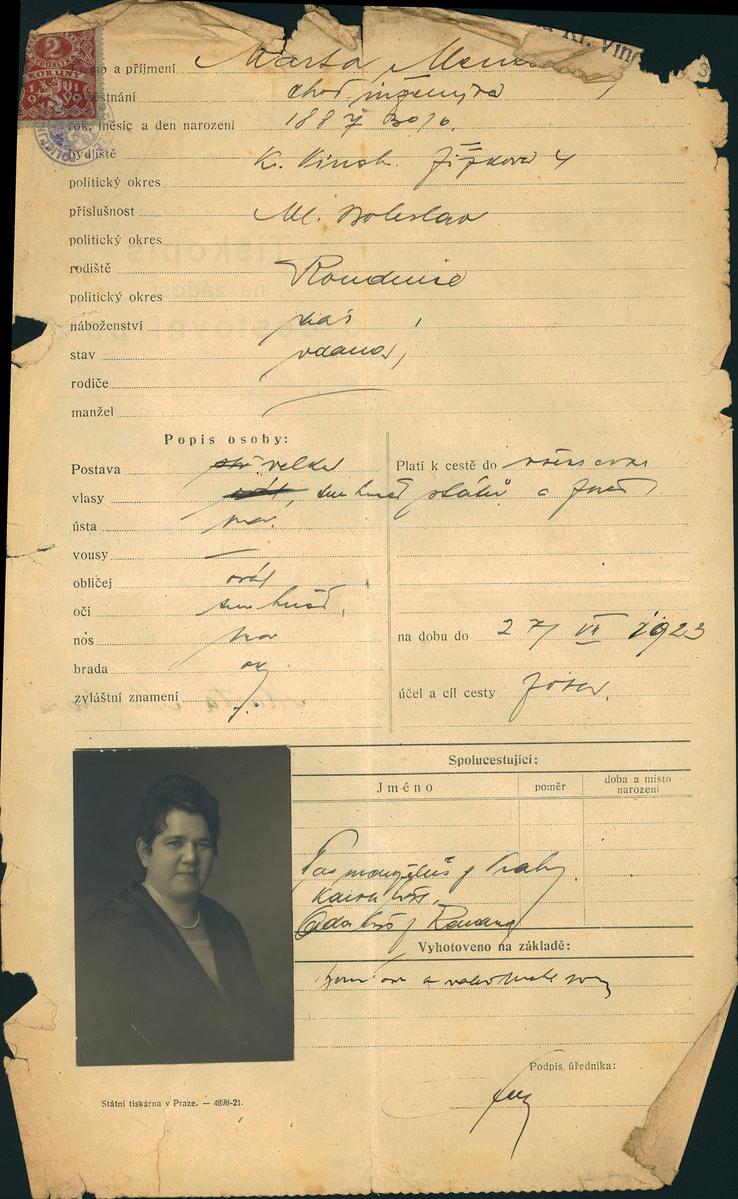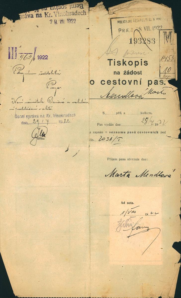 Mendlová Marta: Žádost o vydání cestovního pasu
