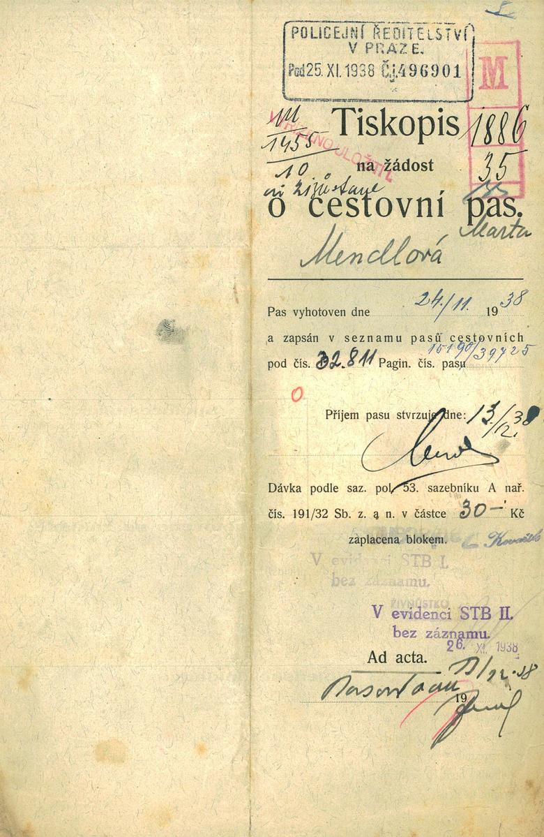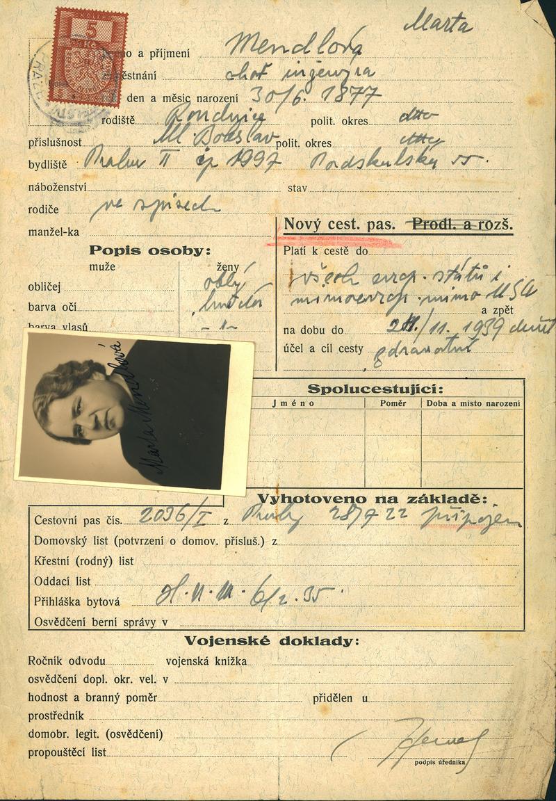 Mendlová Marta: Žádost o vydání cestovního pasu
