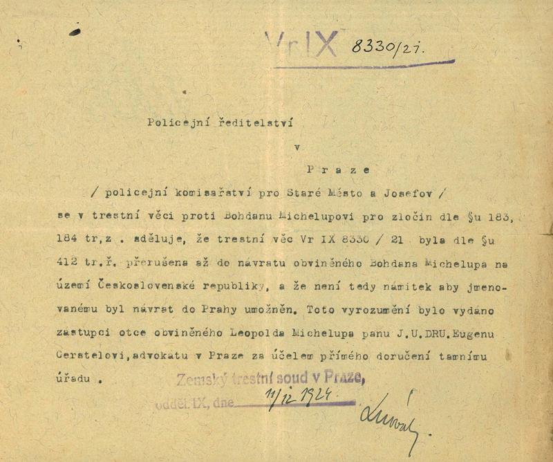 Michelup Bohdan: Vyjádření žádosti o povlení návratu do Prahy