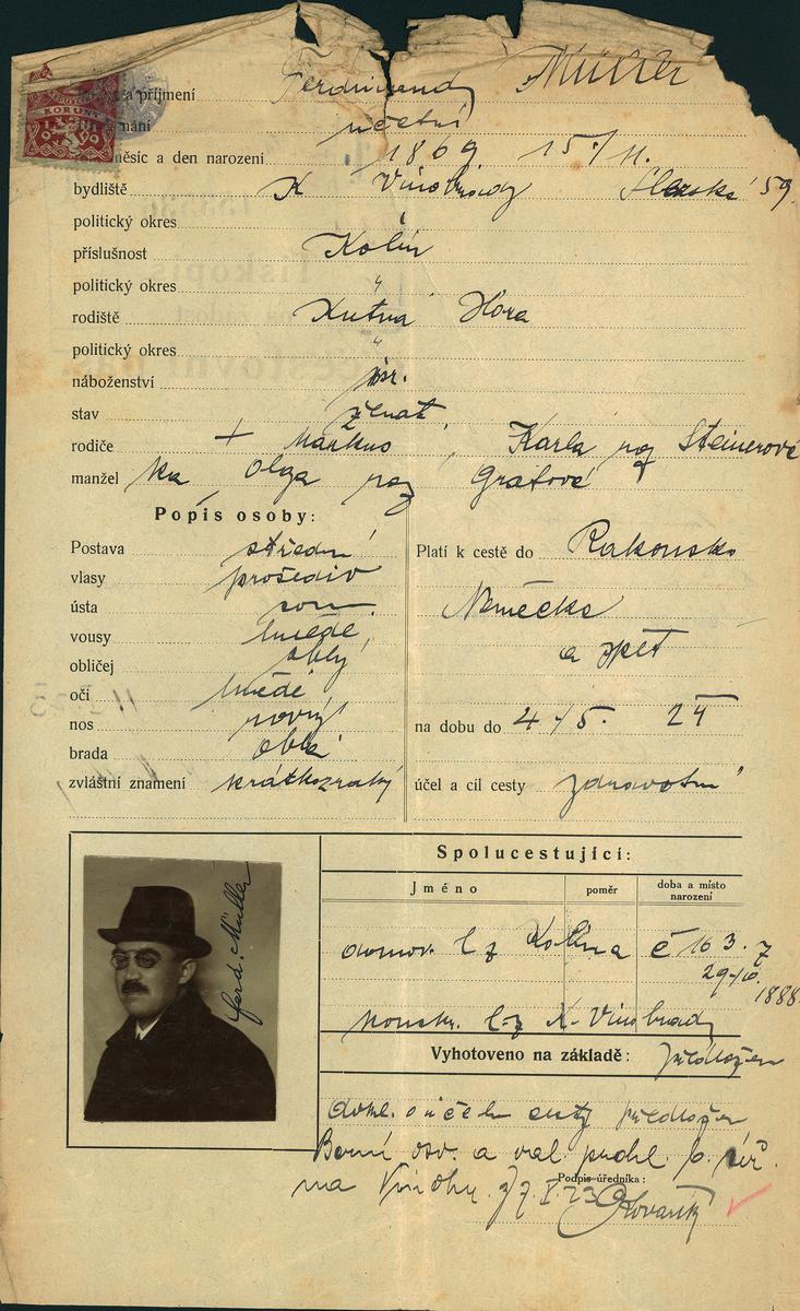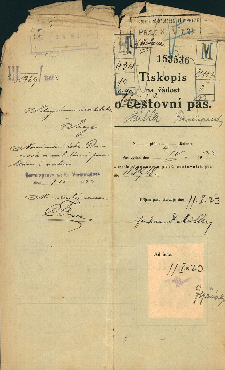 Müller Ferdinand: Žádost o vydání cestovního pasu