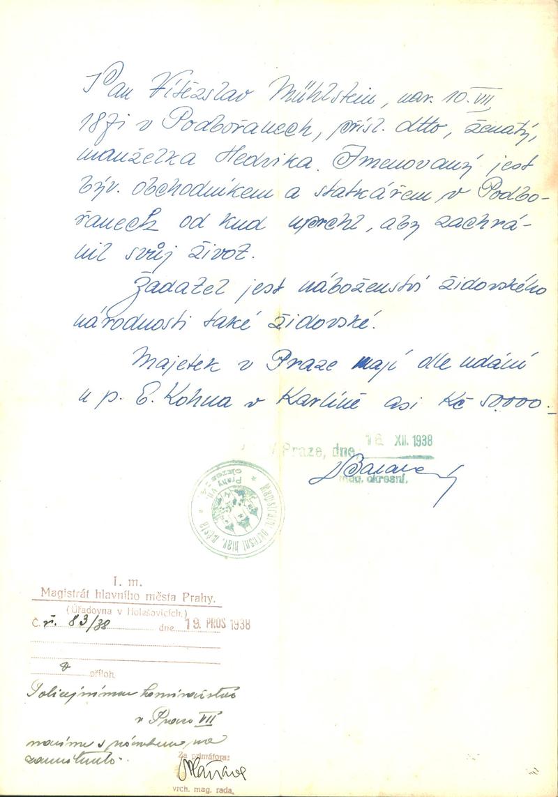Mühlstein Vítězslav: Žádost o povolení pobytu