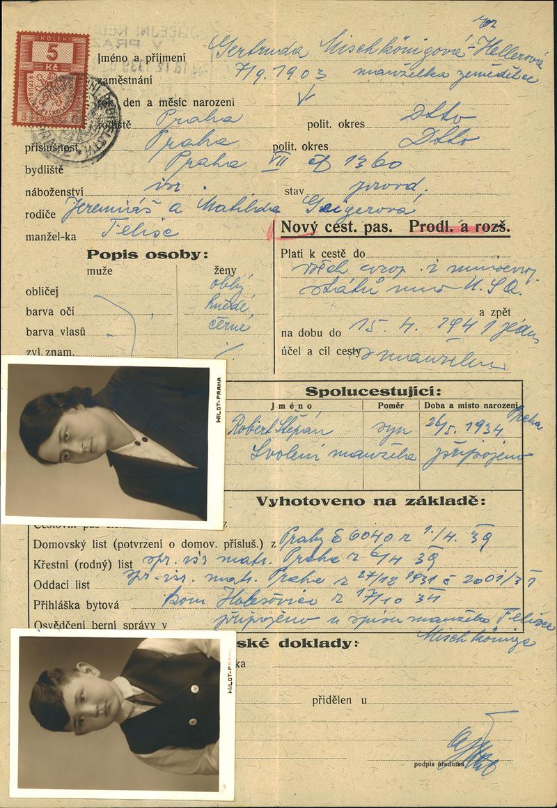 Mischkönigová Gertruda: Žádost o vydání cestovního pasu