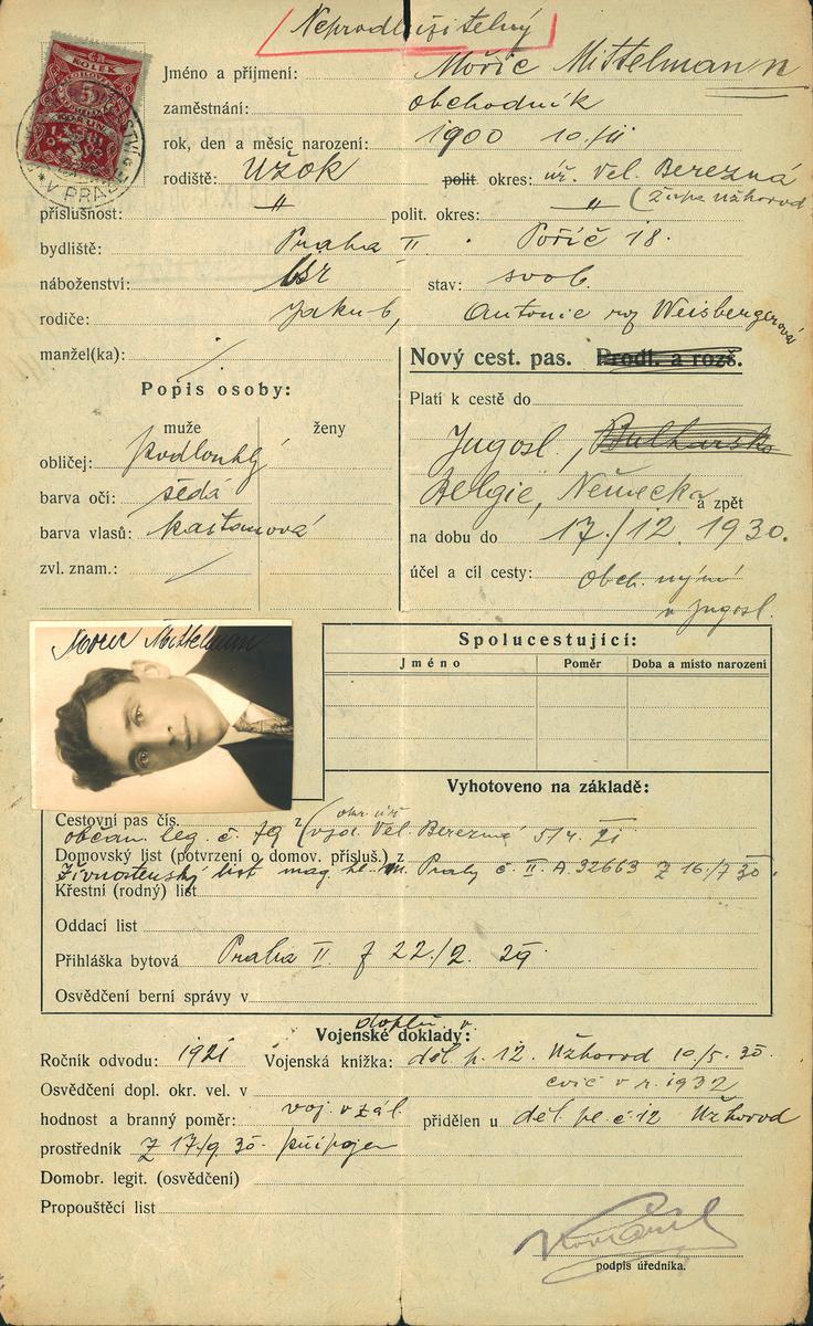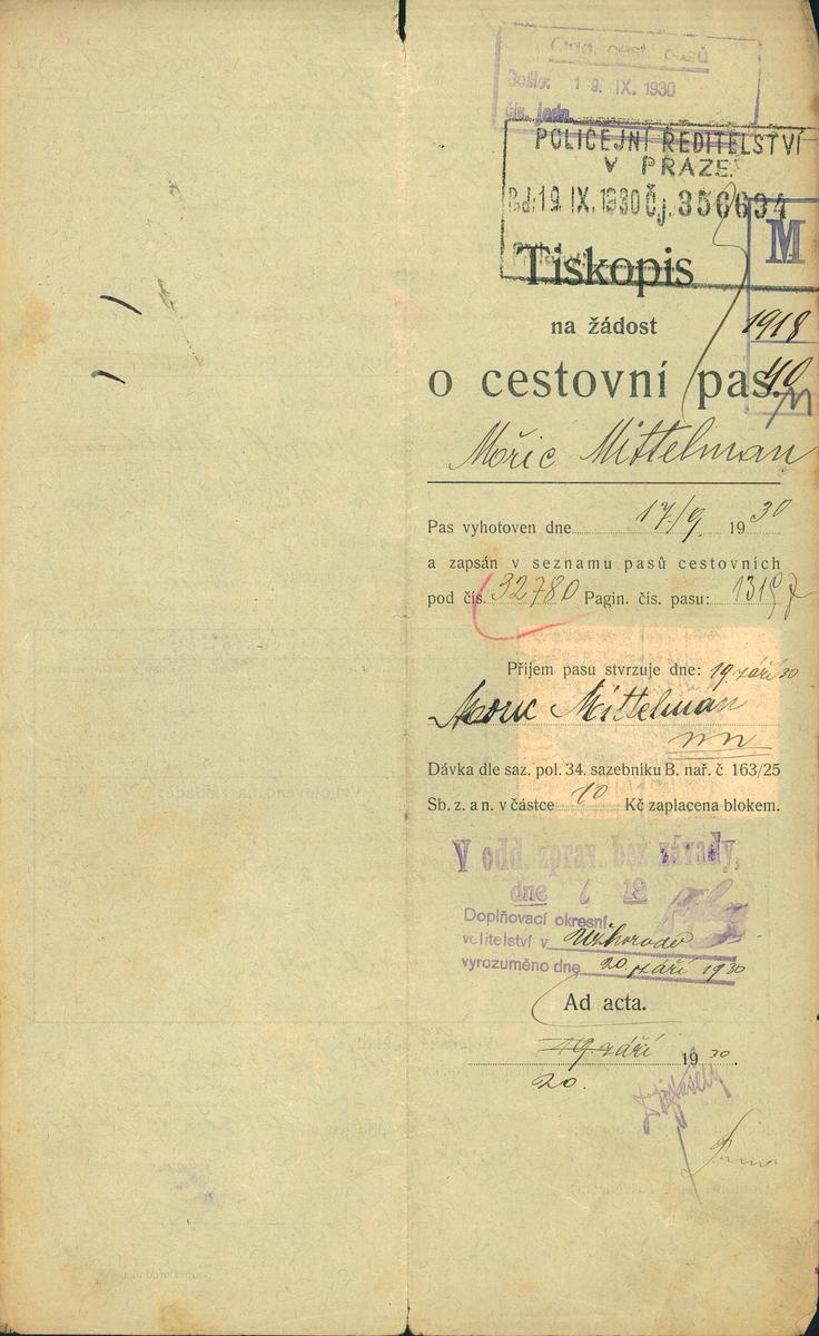 Mittelman Moritz: Žádost o vydání cestovního pasu