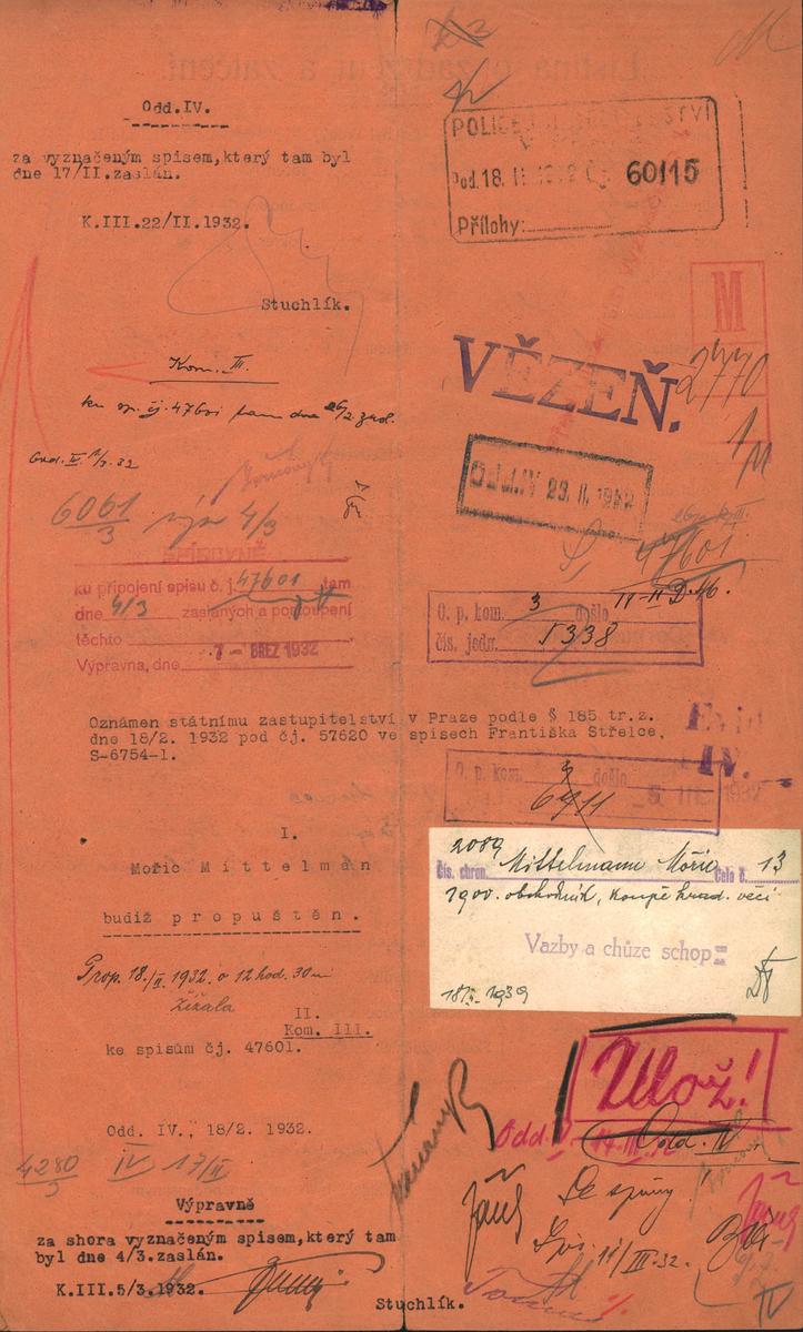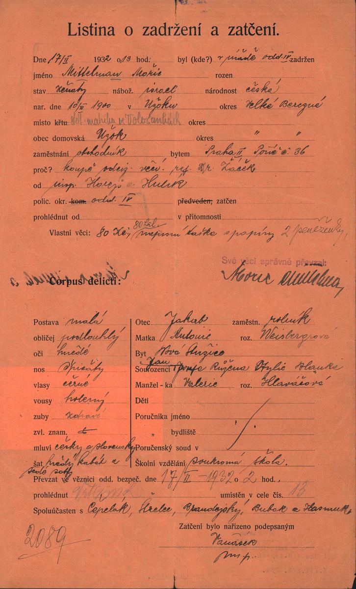 Mittelman Moritz: Protokol o zadržení a zatčení
