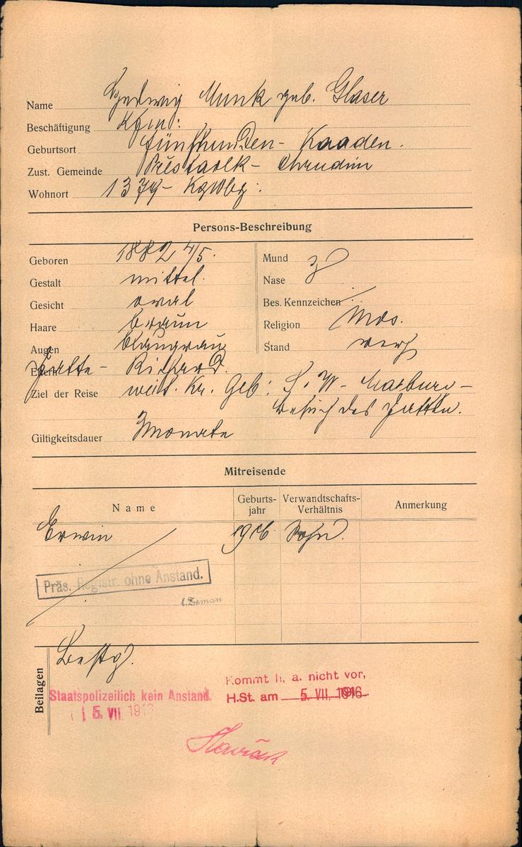 Munková Hedvika: Žádost o vydání cestovního pasu