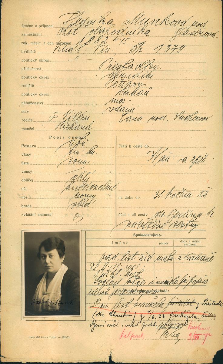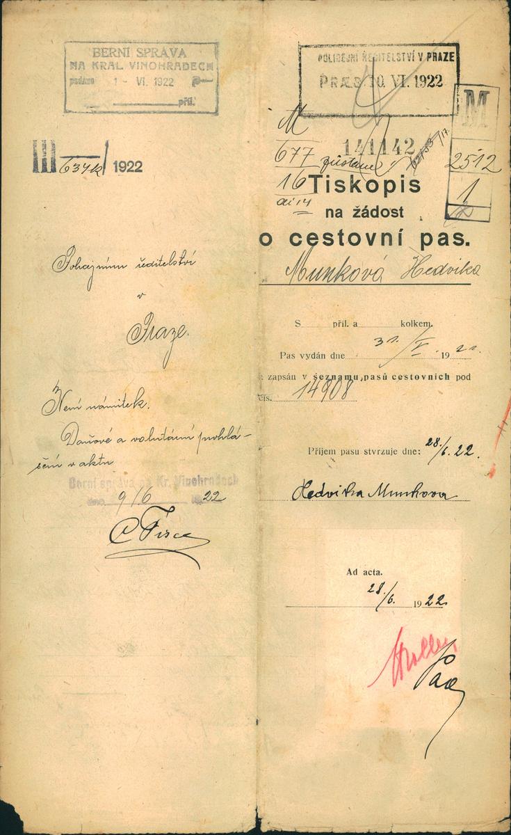 Munková Hedvika: Žádost o vydání cestovního pasu