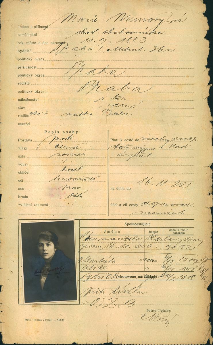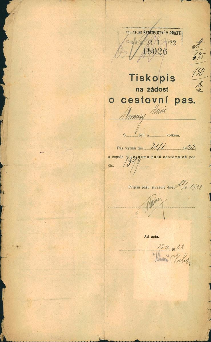 Munoryová Marie: Žádost o vydání cestovního pasu