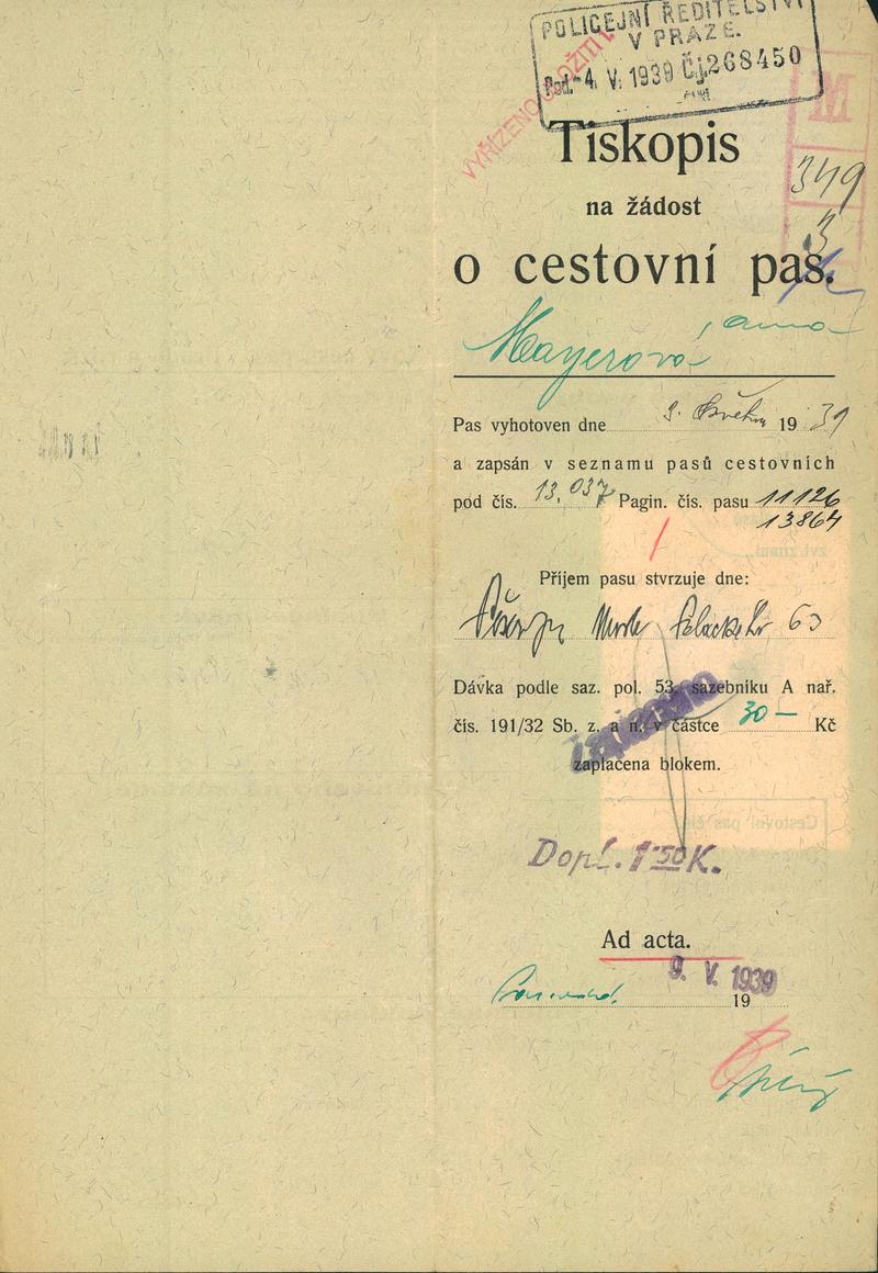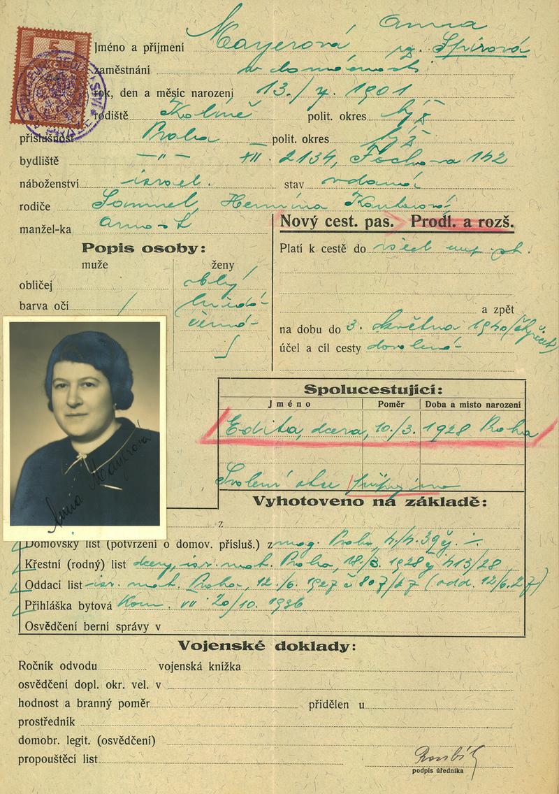 Mayerová Anna: Žádost o vydání cestovního pasu