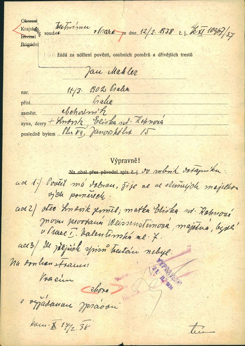Národní archiv Praha > Policejní ředitelství v Praze > 1931-1940 > M > Mahler Jan