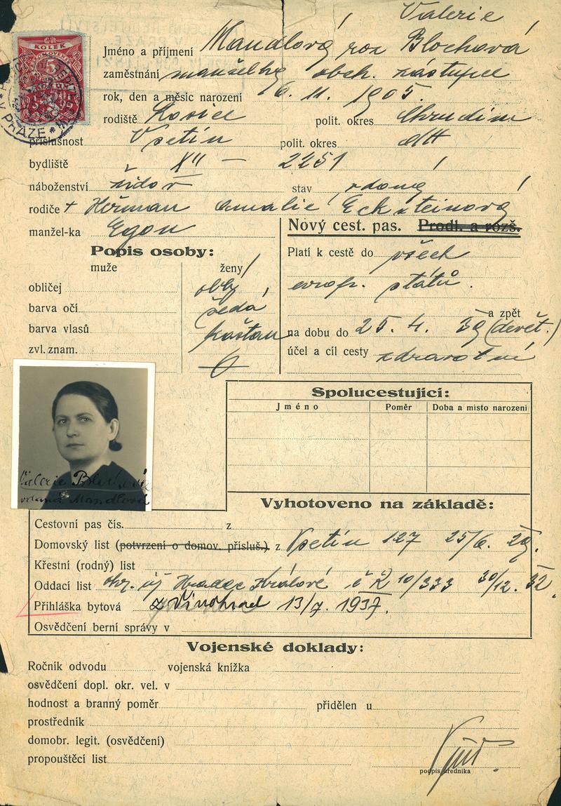 Mandlová Valerie: Žádost o vydání cestovního pasu