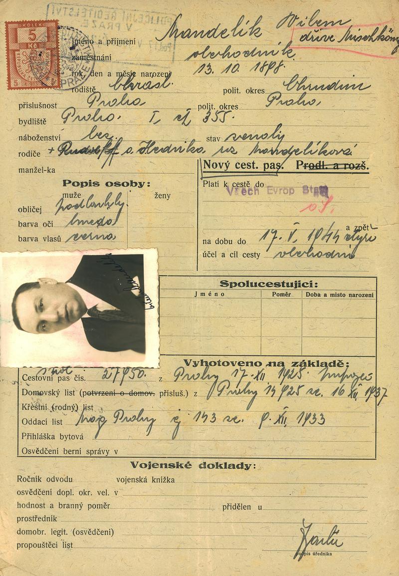 Mandelík Vilém: Žádost o vydání cestovního pasu