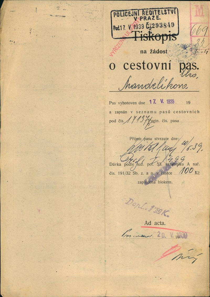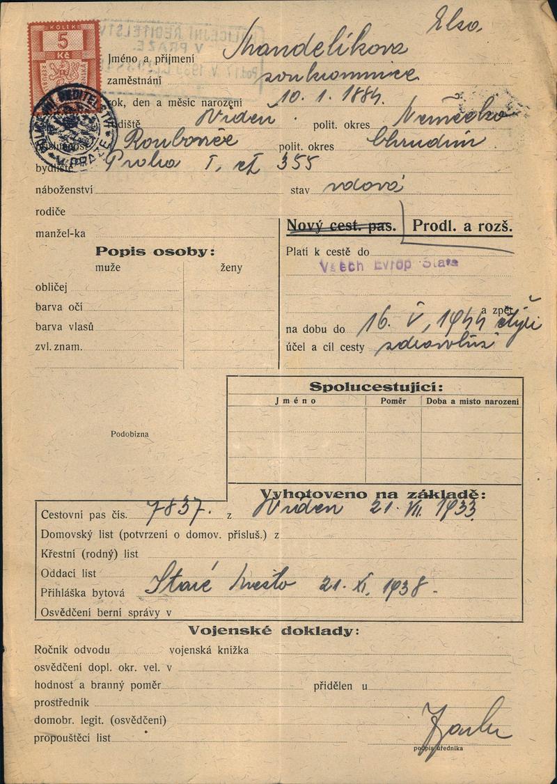 Mandelíková Elsa: Žádost o prodloužení a rozšíření cestovního pasu