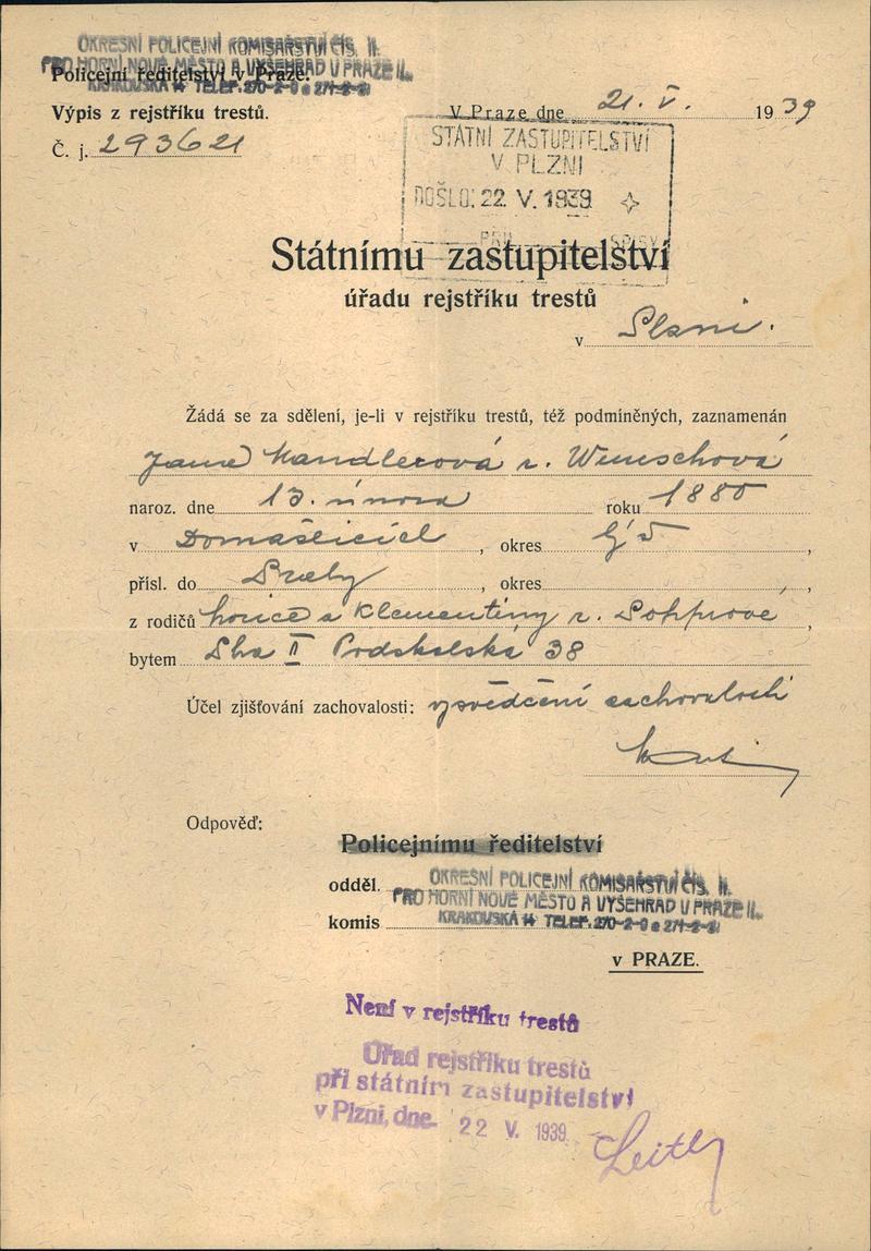Mandlerová Johanna: Žádost o výpis z trestního rejstříku