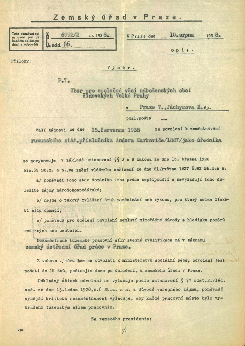 Marcovici Andor: Zákaz zaměstnávání cizího státního příslušníka