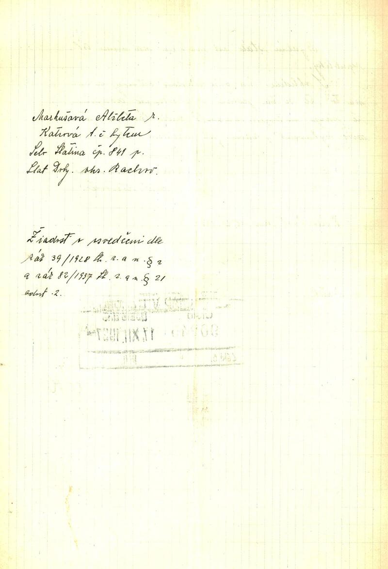 Markusová Alžběta: Žádost o vystavení osvědčení o státní příslušnosti