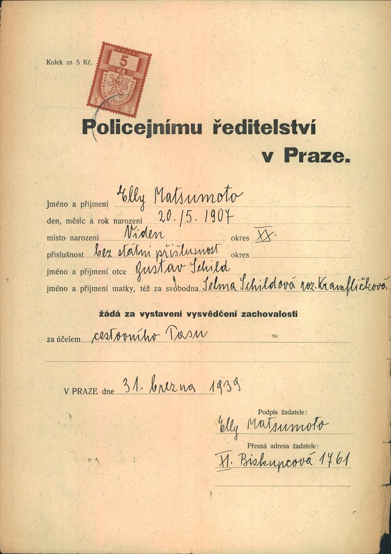 Matsumotová Ella: Žádost o vystavení vysvědčení zachovalosti