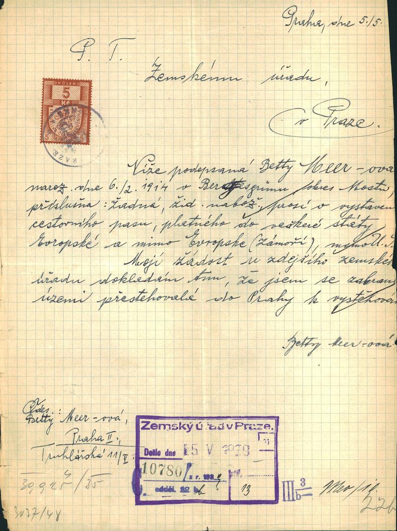 Meerová Alžběta: Žádost o vydání cestovního pasu