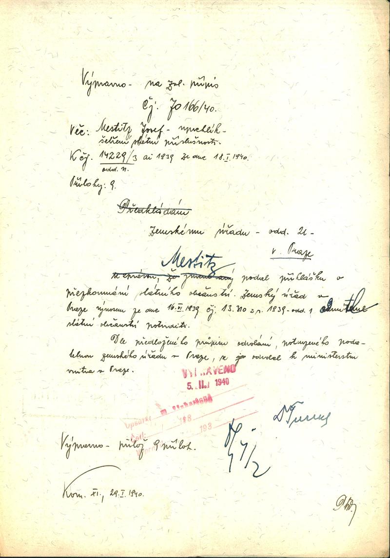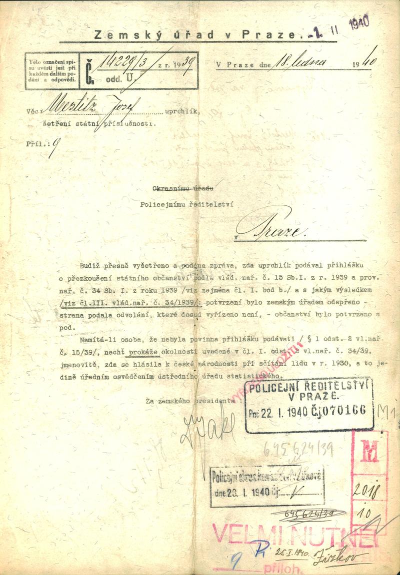 Mestitz Josef: Šetření o státní příslušnosti