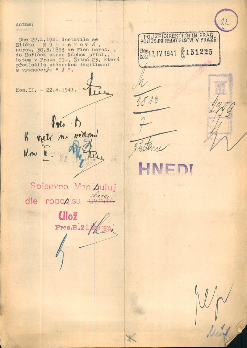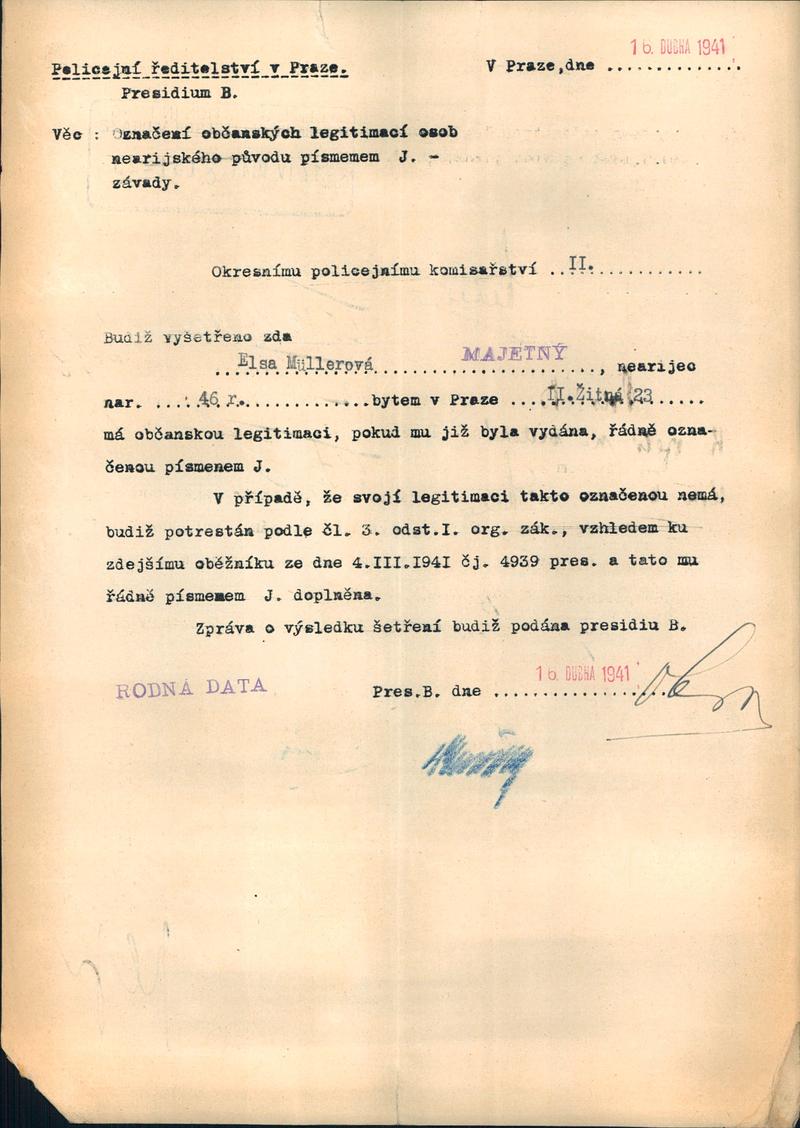 Müllerová Elisa: Označení občanských legitimací písmenem J