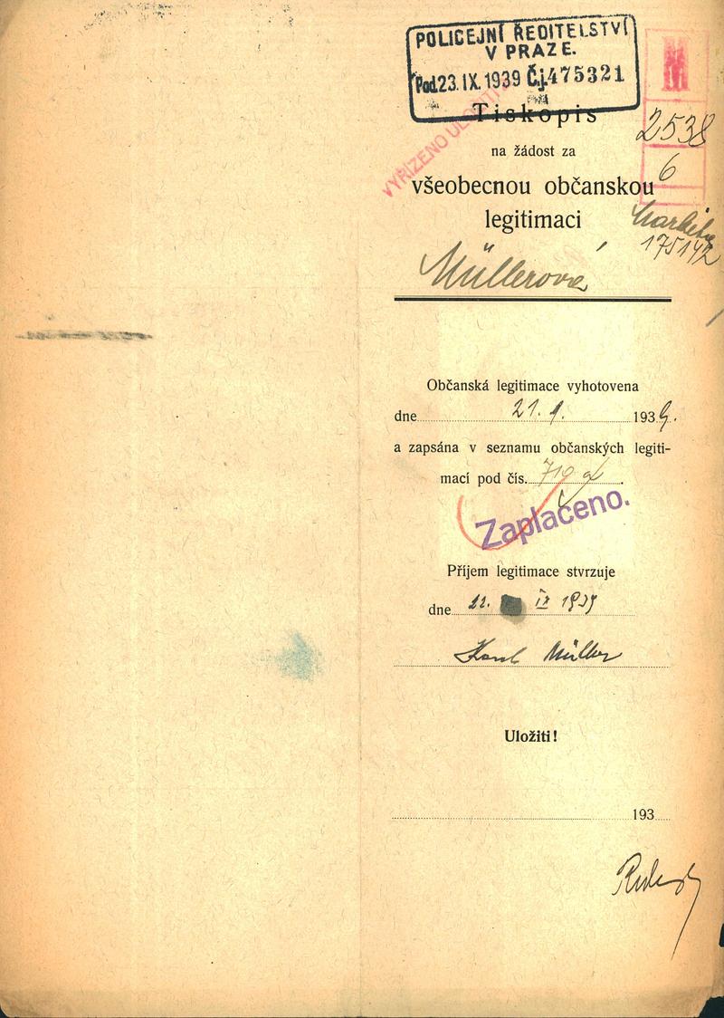 Müllerová Markéta: Žádost o vydání občanské legitimace