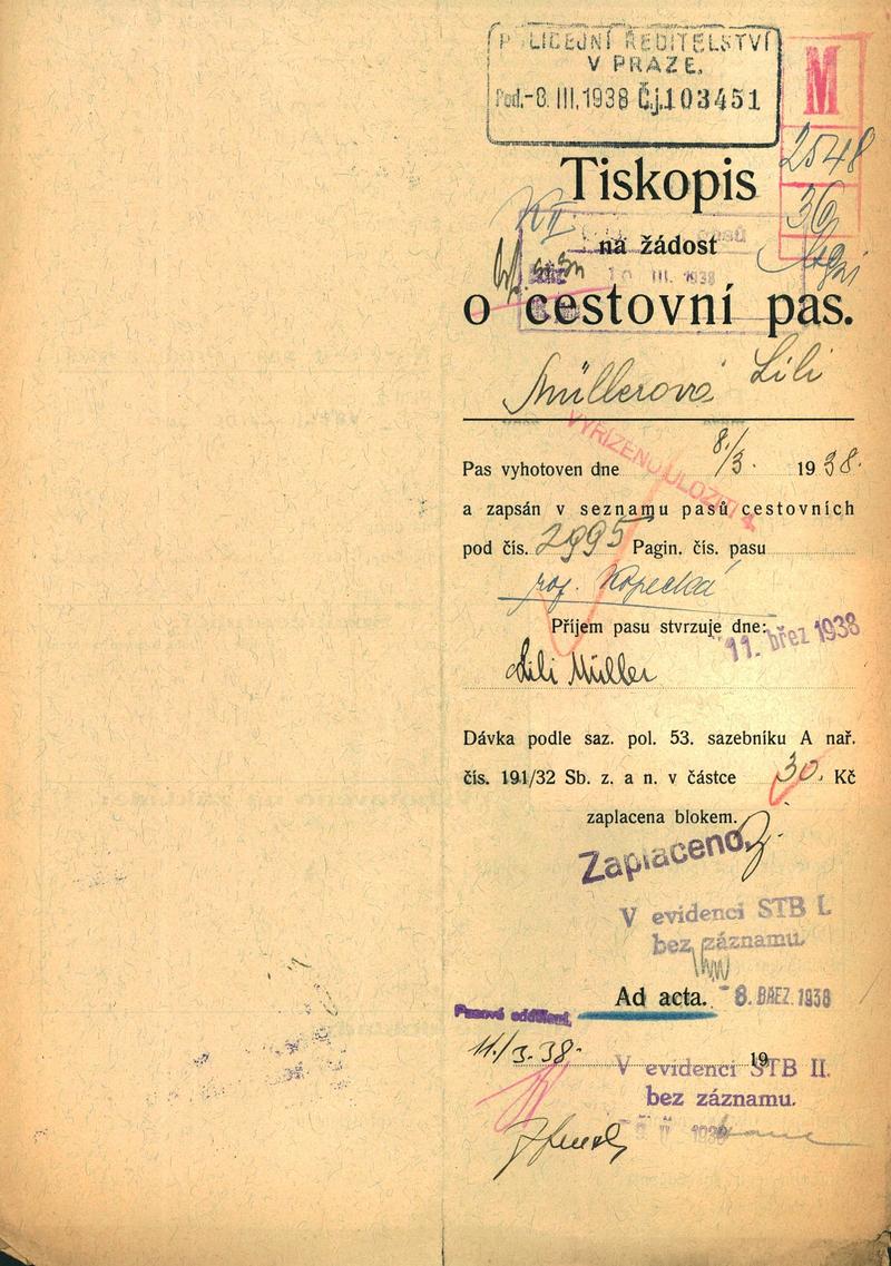 Müllerová Lily: Žádost o prodloužení a rozšíření cestovního pasu