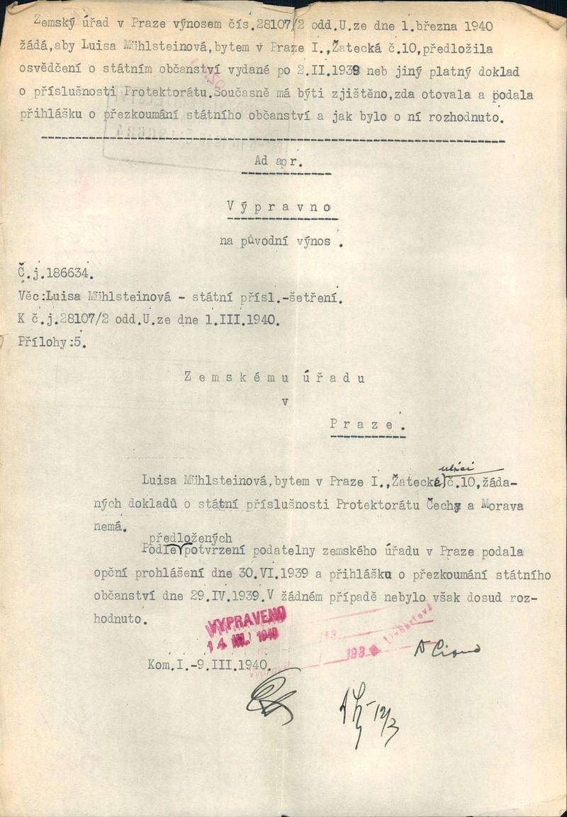 Mühlsteinová Luisa: Šetření o státní příslušnosti