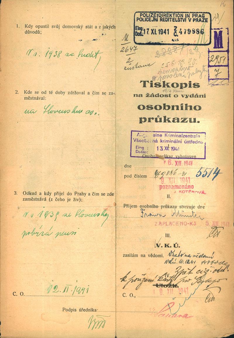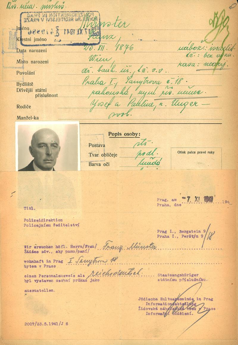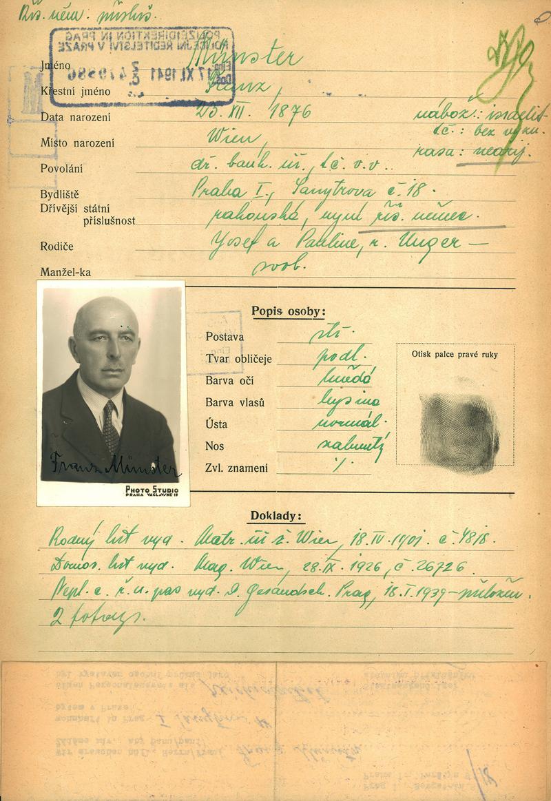 Münster František: Žádost o vydání občanské legitimace