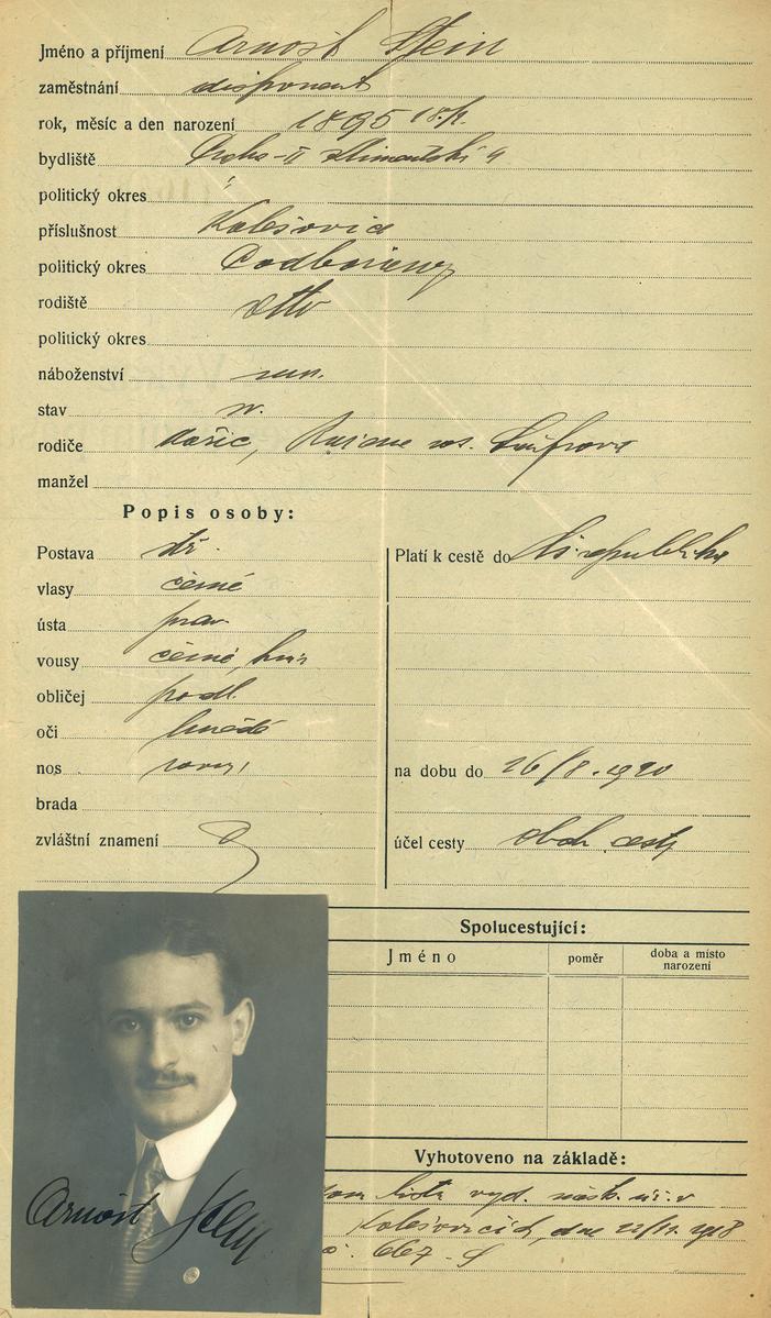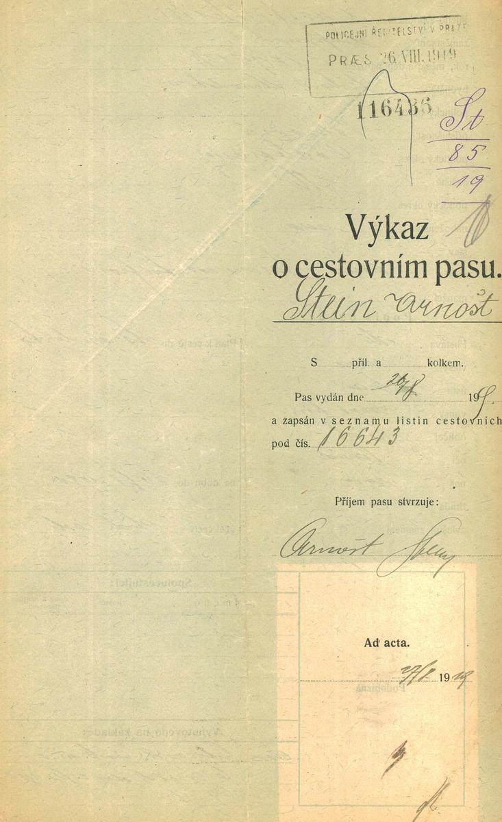 Myška Arnošt: Žádost o vydání cestovního pasu
