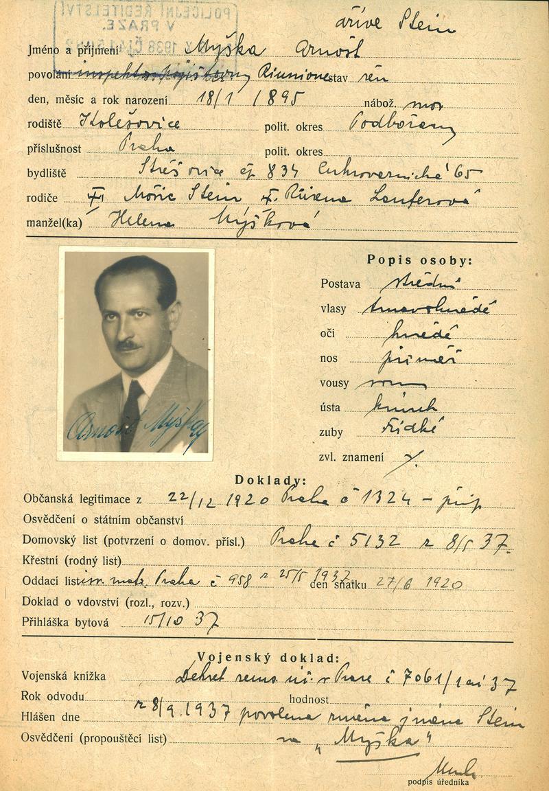Myška Arnošt: Žádost o vydání občanské legitimace