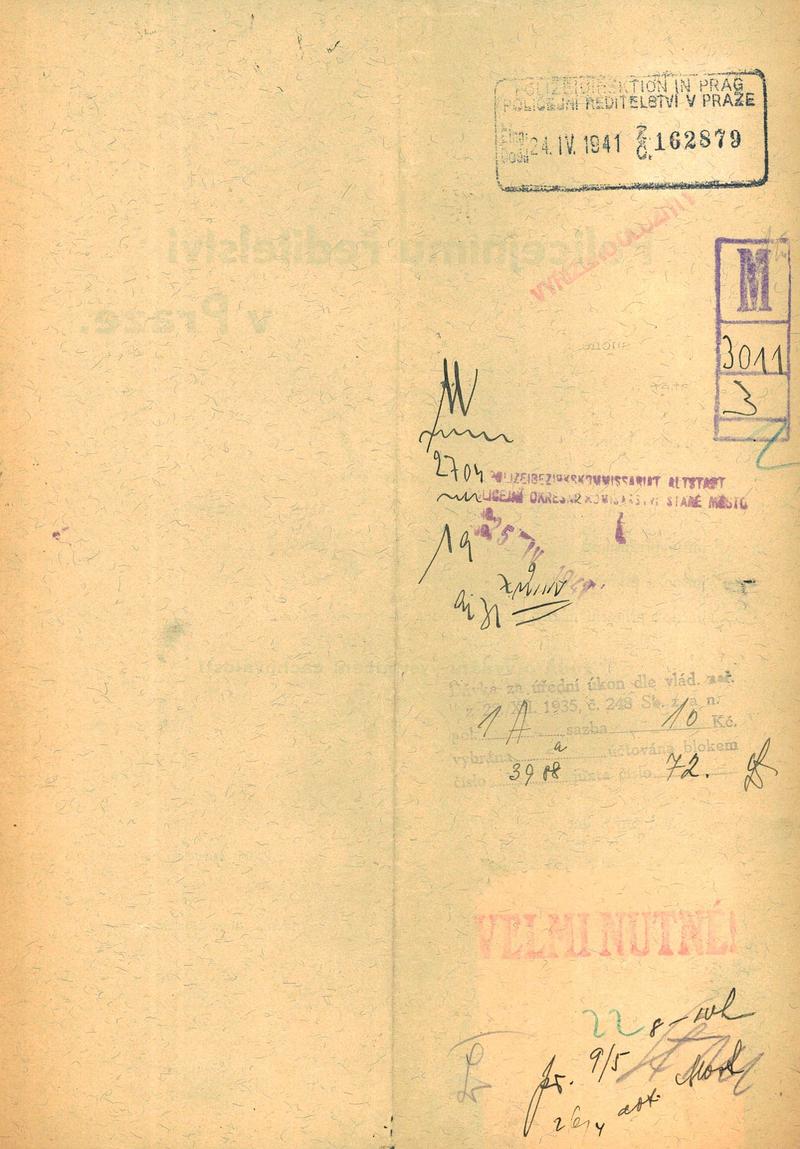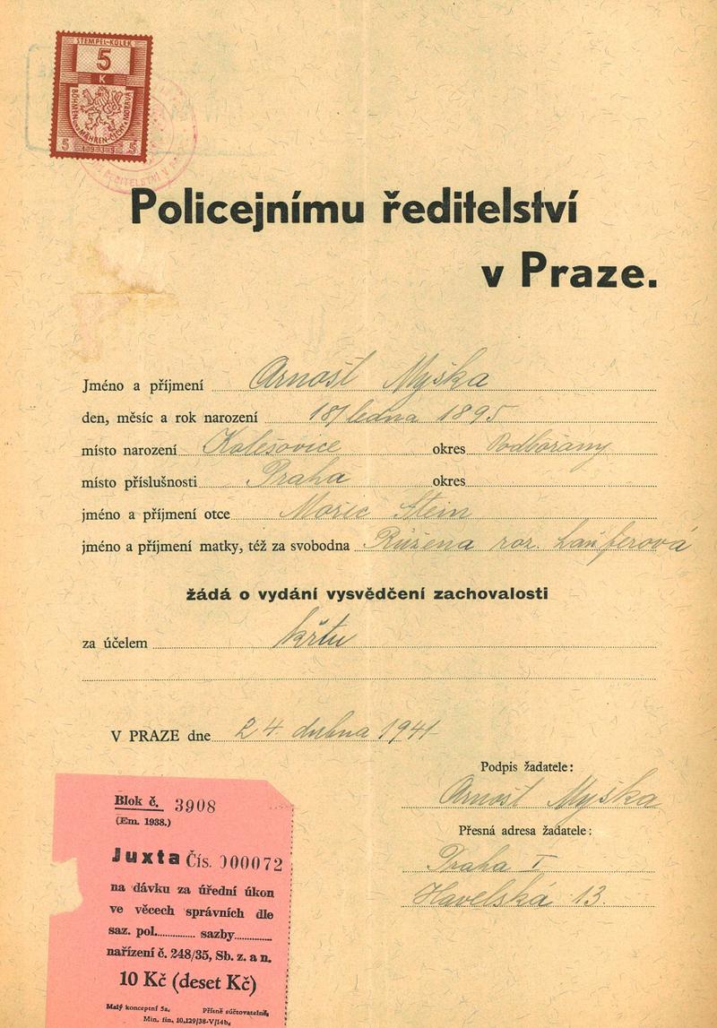 Myška Arnošt: Žádost o vystavení vysvědčení zachovalosti