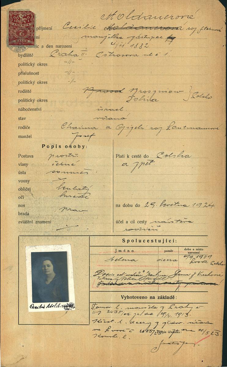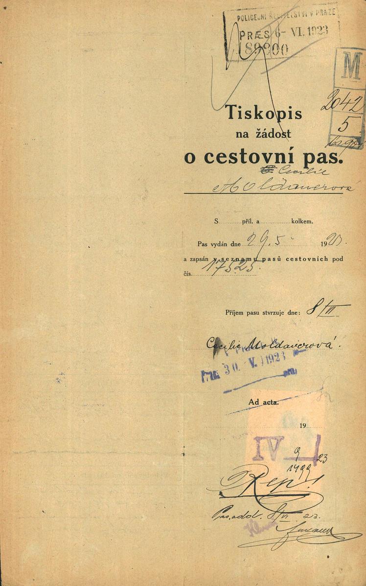Moldauerová Cecilie: Žádost o vydání cestovního pasu