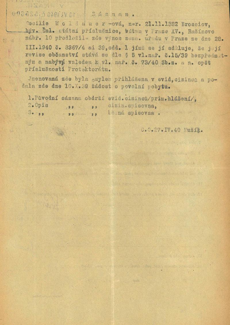 Moldauerová Cecilie: Šetření o státní příslušnosti