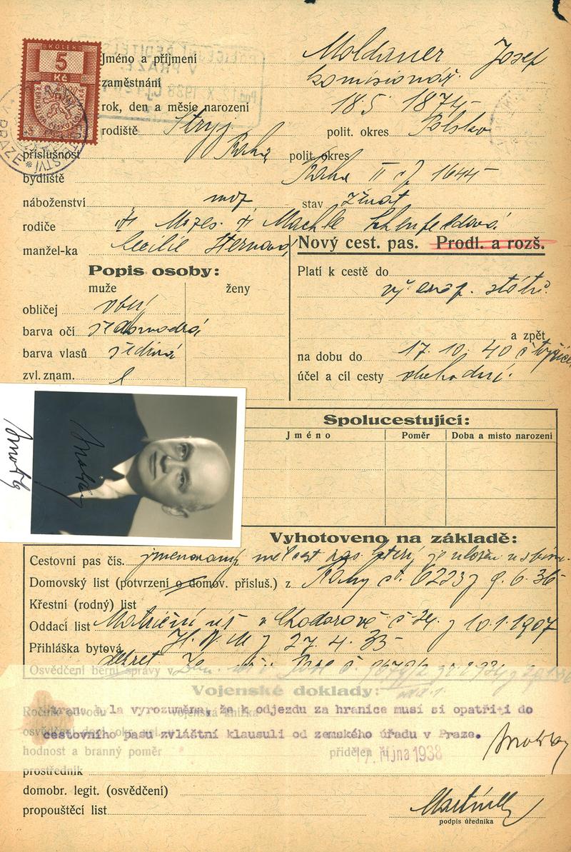 Moldauer Josef: Žádost o vydání cestovního pasu