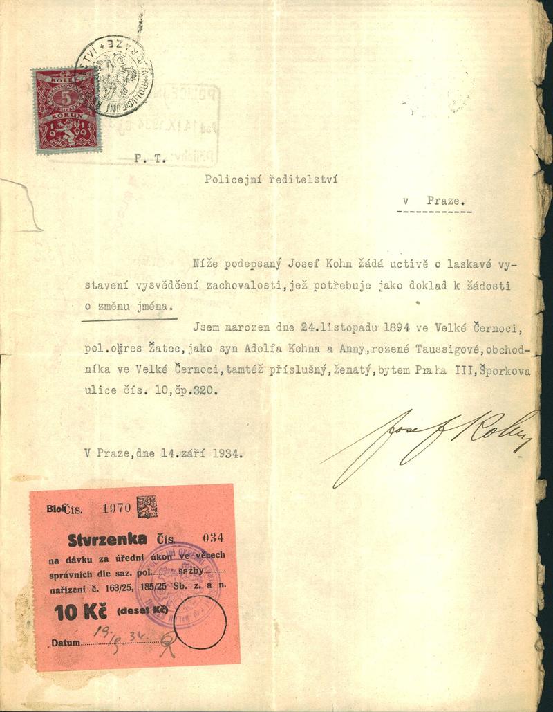 Moravec Josef: Žádost o vystavení vysvědčení zachovalosti