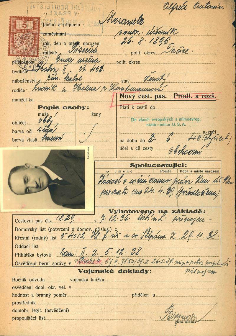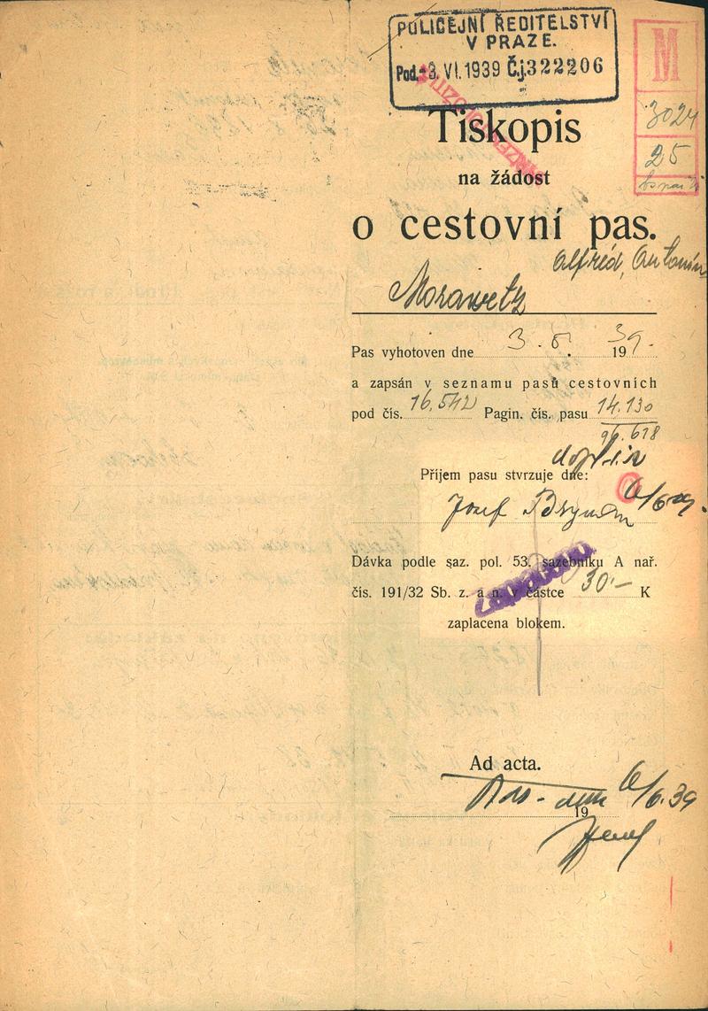 Morawetz Alfred: Žádost o vydání cestovního pasu