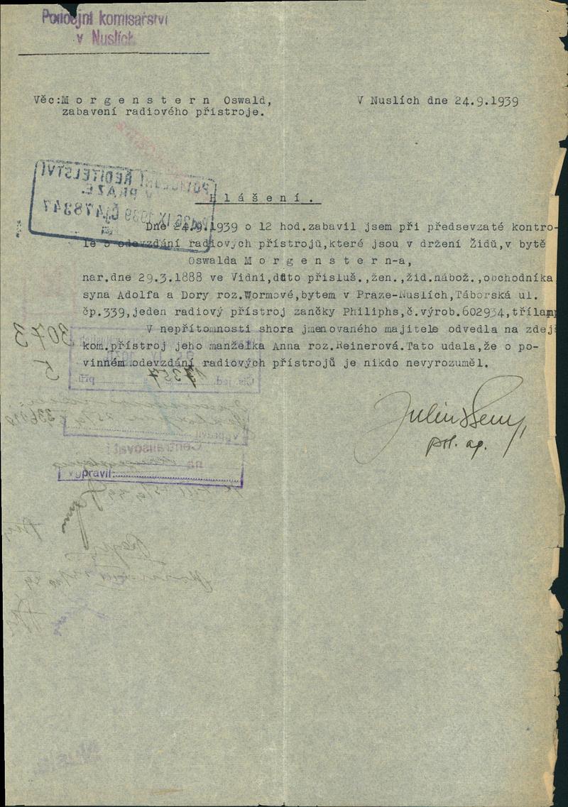 Morgenstern Osvald: Odevzdání radiového přístroje