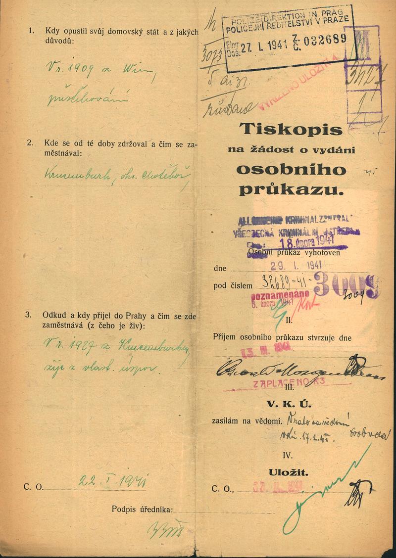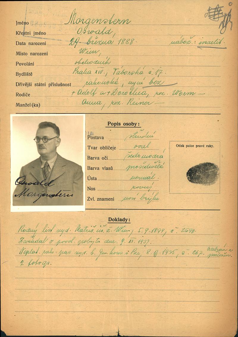 Morgenstern Osvald: Žádost o vydání občanské legitimace