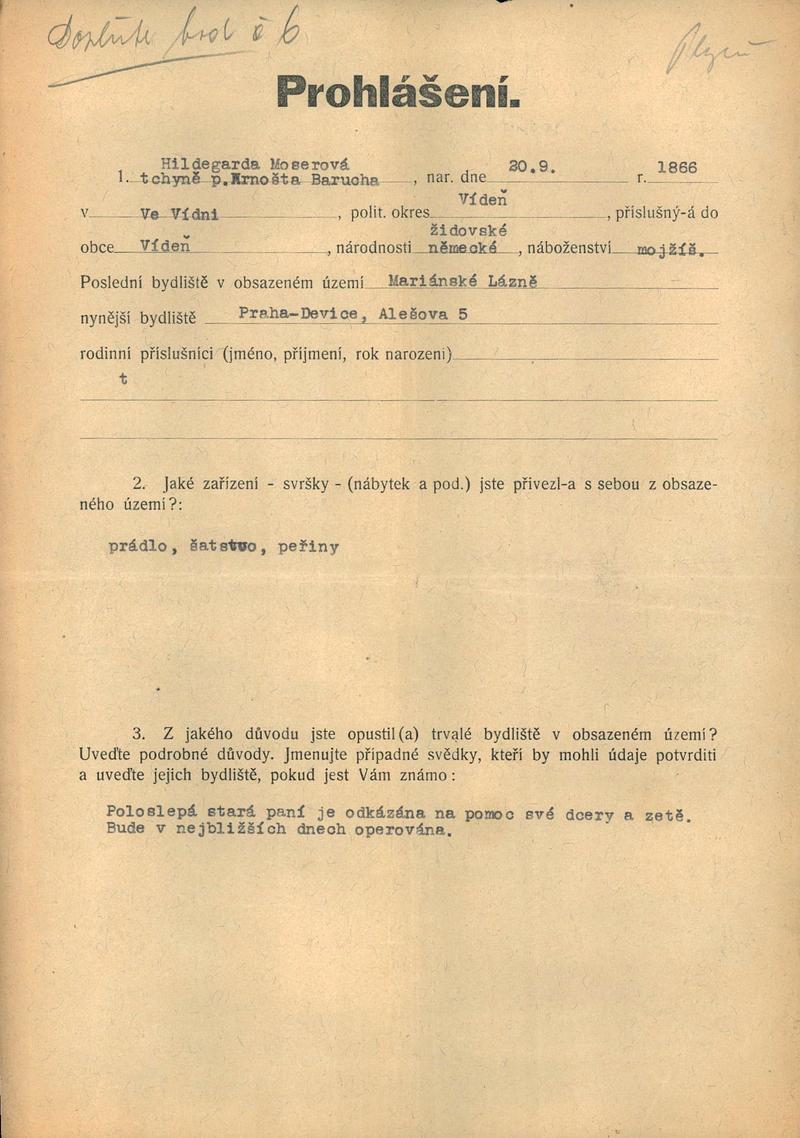 Moserová Hildegard: Protokol s uprchlíkem z pohraničí