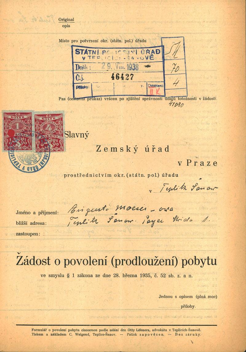 Möserová Augusta: Žádost o prodloužení povolení pobytu