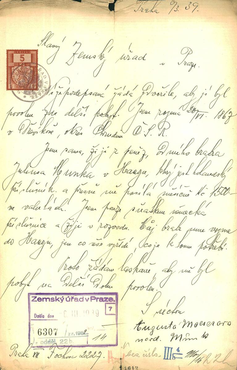 Möserová Augusta: Žádost o prodloužení povolení pobytu