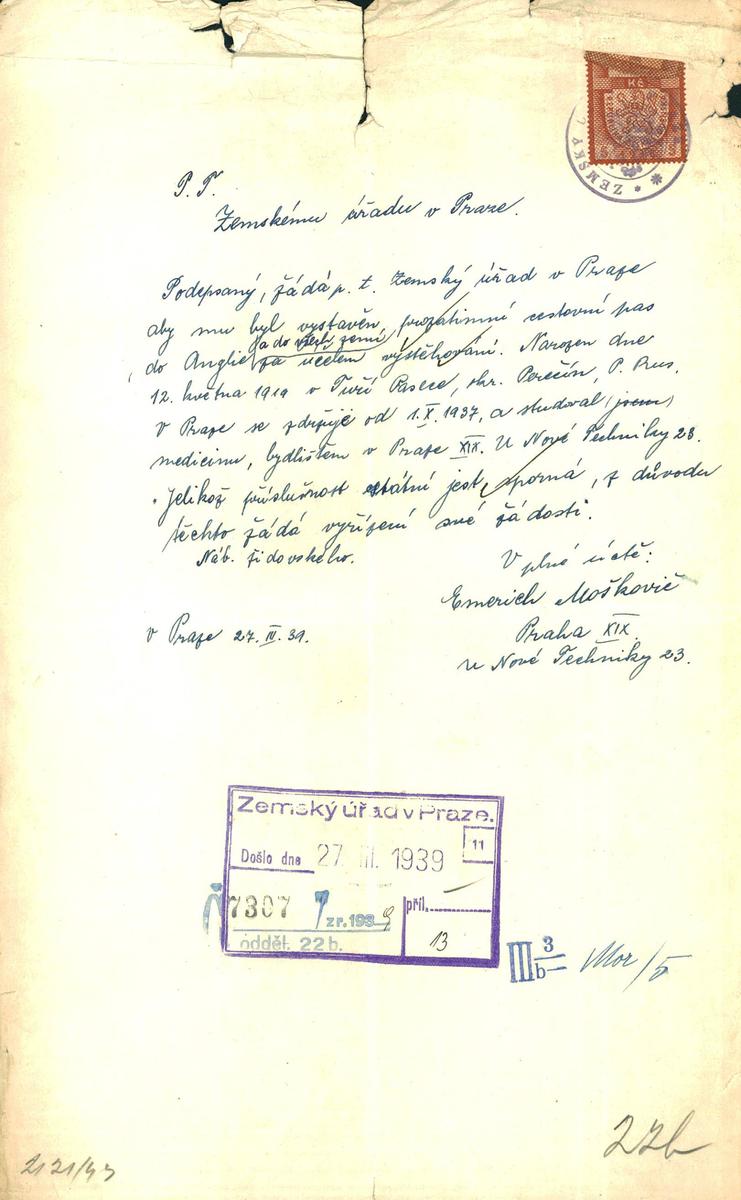 Moškoviç Emerich: Žádost o vydání prozatímního cestovního pasu