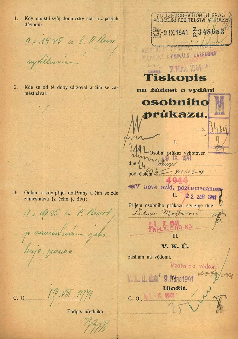 Moškovič Šulem: Žádost o vydání občanské legitimace