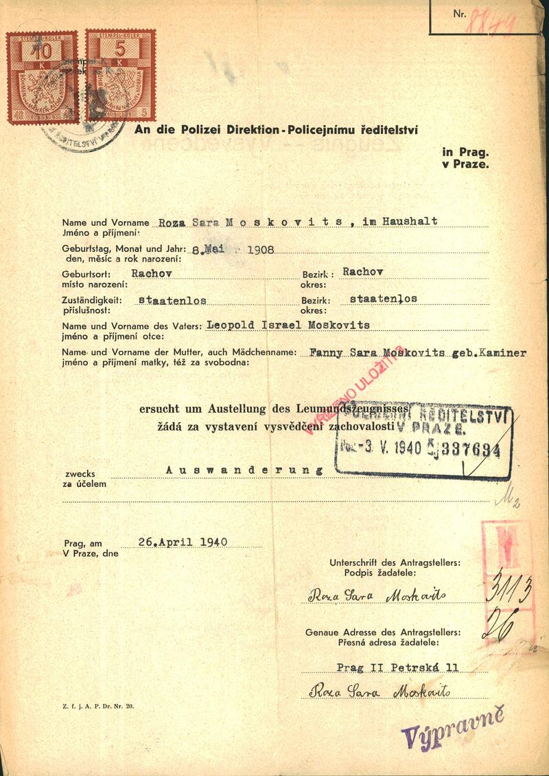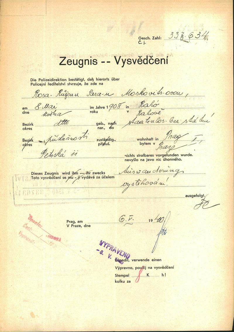 Moskovitzová Růžena: Vysvědčení zachovalosti