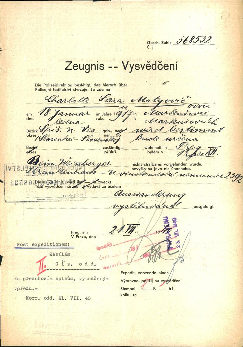 Motyovičová Šarlota: Vysvědčení zachovalosti
