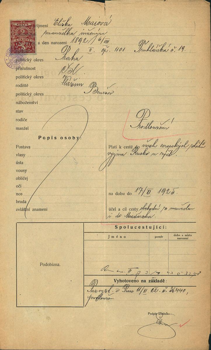 Maiová Elsa: Žádost o prodloužení cestovního pasu