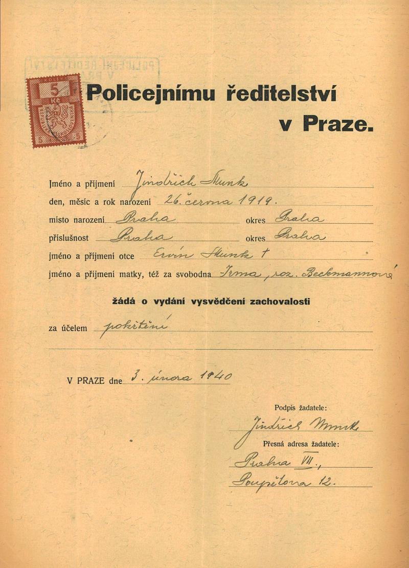 Munk Jindřich: Žádost o vystavení vysvědčení zachovalosti